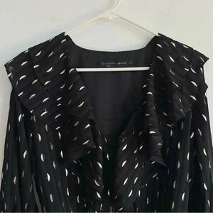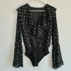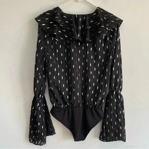 House of Harlow 1960 x Revolve Evora Bodysuit in Noir Gold Ruffle Long Sleeve S