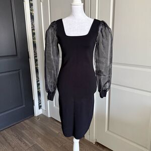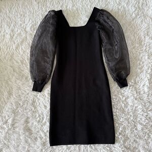 House of Harlow 1960 Black Knit Bodycon Dress with Organza Sleeves Size XS
