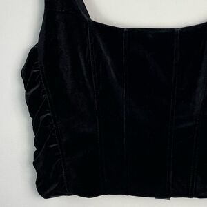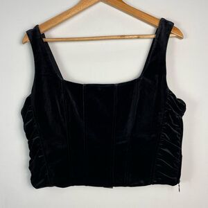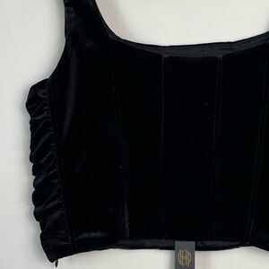 House of Harlow Black Velvet Rushed Corset Crop Top Whimsigoth Grunge Size L NEW