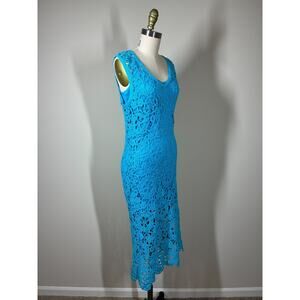 House of Harlow Blue Lace Open Knit Midi Bodycon Dress XS Lined Crochet Colorful