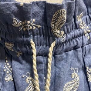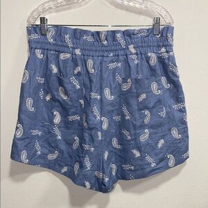 house of harlow shorts, boho embroidered shorts, paisley linen shorts, festival shorts, summer loungewear, drawstring paperbag shorts, casual resortwear #HouseOfHarlow #BohoStyle #LinenShorts #EmbroideredShorts #FestivalFashion #PaperbagWaist #BlueShorts #SizeLarge