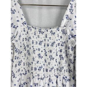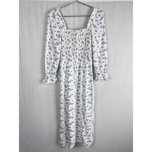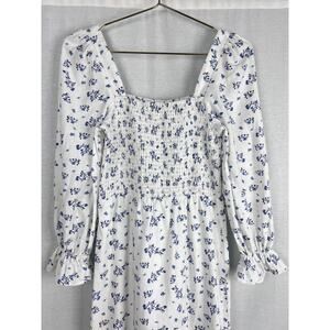 House of Harlow Dress Smocked White Floral Linen Midi Cottagecore Boho Sundress