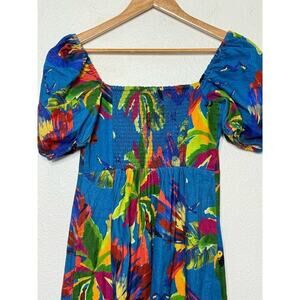 House of Harlow Dress Tropical Milkmaid Summer Midi Maxi Blue Size S
