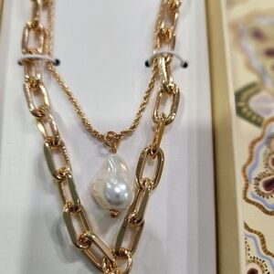 🔹️House of Harlow Gold Sunburst 17" Layered Glass Pearl + Glass Stone Necklace