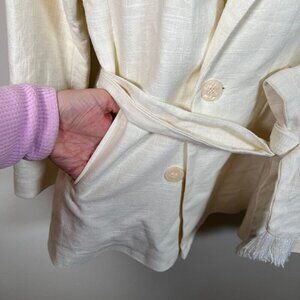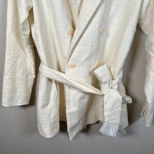 House of Harlow Linen Blend Blazer Jacket Size XS Ivory Double Breasted Tie