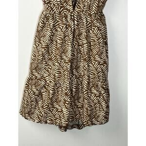 House of Harlow Linen Blend Mini Dress Medium Brown Deep V Cut Out Open Back Tie