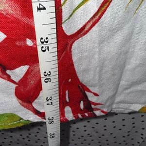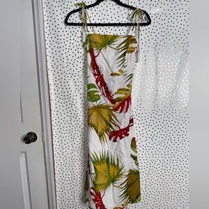 Embrace the essence of resort style with this stunning House of Harlow 1960 . The sleeveless design features delicate and a vibrant red and green tropical print, perfect for sun-soaked getaways. Its flowing silhouette and lightweight fabric ensure comfort and elegance in warm weather.