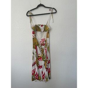 House of Harlow Midi Dress Size XS Linen-Blend Cut Out Smocked Back Bead Tassels