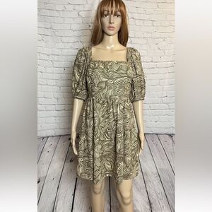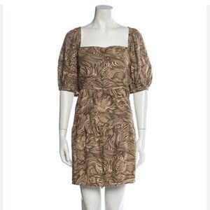 House of Harlow Mini Brown Dress Print Linen Puff Sleeve Babydoll Size S