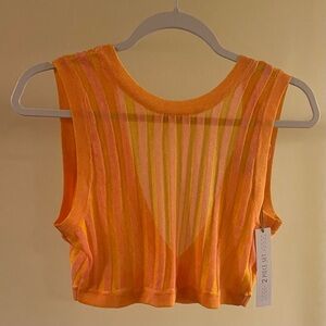 House of Harlow Orange Pleated Two Piece Skirt Set