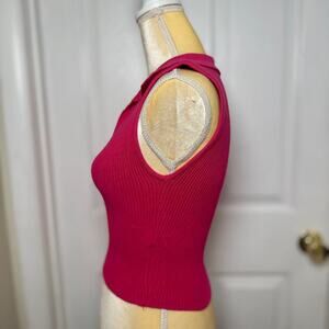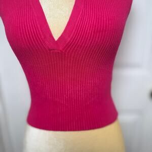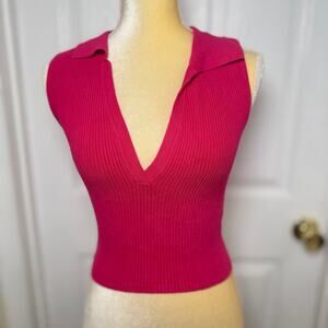 House of Harlow Pink Collared Ribbed V-Neck Sleeveless Crop Top - XS