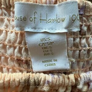 House of Harlow 1960 Smocked Waist Puff Sleeve Midi Dress S Linen Blend