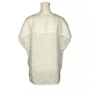 Add a touch of bohemian style to your wardrobe with this House of Harlow REVOLVE Linen Embroidered Top in size medium. The V-neckline and pullover closure make it a versatile piece for travel, casual outings, or workwear. The white color and solid pattern give it a classic look, while the embroidered accents add a unique touch.