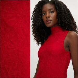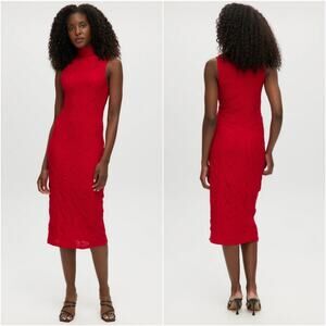 House of Harlow Red Sleeveless Mock Neck Textured Knit Midi Dress Size M