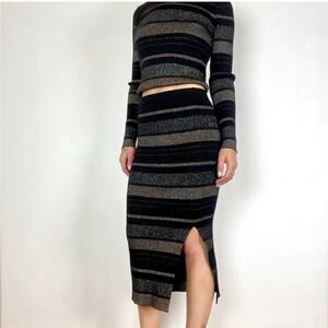 House of Harlow Ribbed Knit Metallic Striped Pencil Skirt. Smal