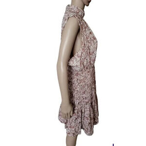 House of Harlow SHONA JOY Colette MockNeck Smocked Paisley Metallic Mini Dress. New without tag.