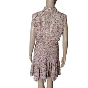 House of Harlow SHONA JOY Colette MockNeck Smocked Paisley Metallic Mini Dress L