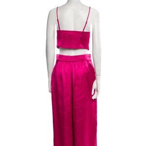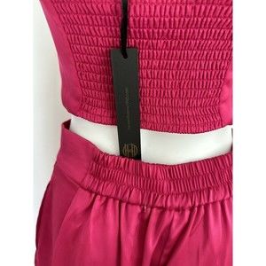 House of Harlow Satin Pants Crop Top SET S High Waist Elastic Back Pink NWT