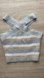 This is a cropped, halter tank with a criss-cross neckline. This version comes in a yarn-dyed stripe pattern that's been woven in, as opposed to printed on, for a more dimensional look.