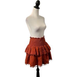 House of Harlow Terracotta Tiered Ruffle Pom Fringe Flare Skirt, Size L (8-10)