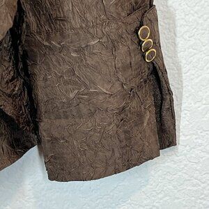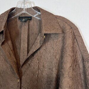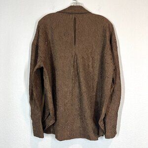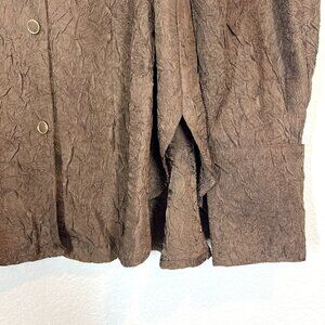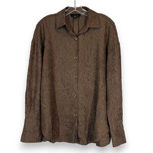 Top Blouse Brown Crepe Button Up Long Sleeve Size Small.