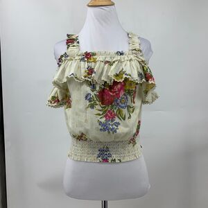 House of Harlow Top Women XS Extra Small Helena Cream Smocked Cold Shoulder Tank