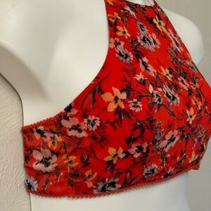 House of Harlow X Revolve size S halter Tie Back Top Red Floral Festival