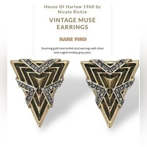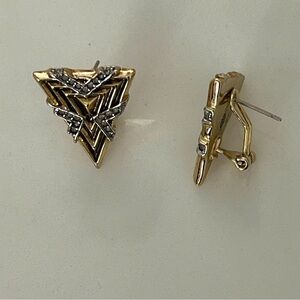 House of Harlow post Earrings, gold tone, triangle shape, marked. Vintage gem! EUC