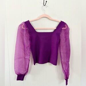House of Harlow Chiffon Organza Puff Sleeve Cropped Blouse Purple