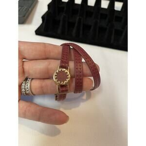 House of Harlow red leather - gold pendant, perfect. Listing shows matching bracelet which is not part of this listing but also for sale.in Ebay.