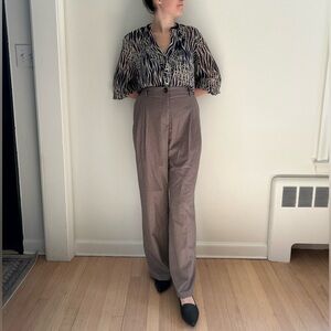 House of Harlow wide leg houndstooth brown high waisted trousers pants tall M/L