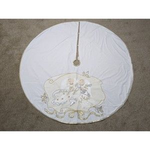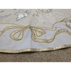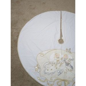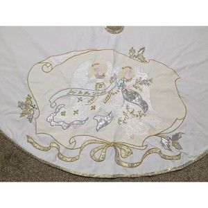 House of Hatten Appliquéd Satin Angels Christmas Tree Skirt 58" Round Vintage