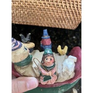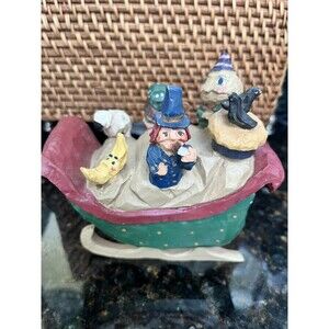 House of Hatten high end Christmas Holiday figure of Santa's sleigh with nursery rhyme characters. It was released in 2000 and is of a high quality painted resin. Please note there are a few missing areas of paint loss. It measures 5 inches in width by 5.5 inches in length by 2.75 inches. Please look over all pictures carefully before purchasing. It comes from a smoke free but pet friendly home. I ship within 24 to 48 hours after receipt of payment. Ho917