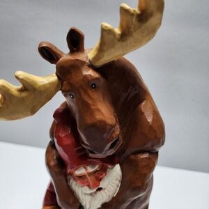 House of Hatten Susan Smith 2001 Reindeer Hugging Santa Figurine 9.5" tall, right antler has been glued back on.