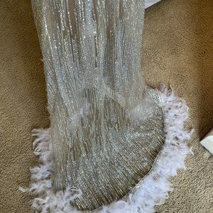 House of Jade Sky Sequin Party, Cocktail, Prom Dress with Feather Detail