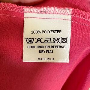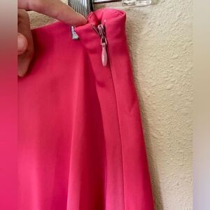 This House of Lancry high low hem skirt is a Barbie Pink color and Sz xs. The material is very flowy and has a satin finish.