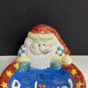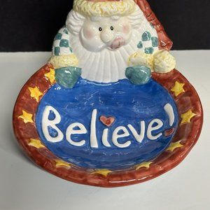 House of Lloyd Ceramic Santa Claus Candy Trinket Dish BELIEVE Christmas Colorful