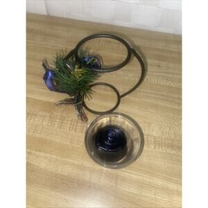 Glass holder to hold a little candle. Black metal holder with Christmas trimming.