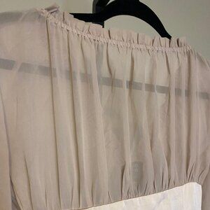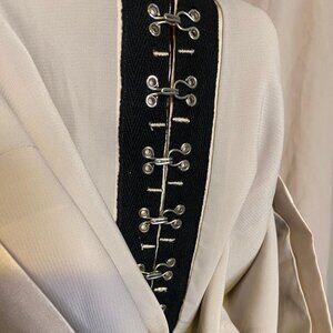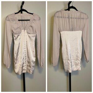 Beautiful dress in stunning taupe stretch satin. Heavy-duty front closures with eyelets and hooks.