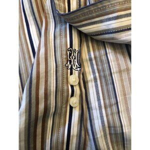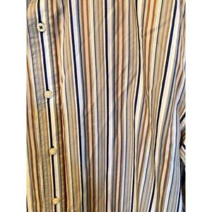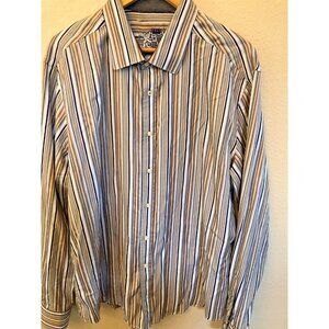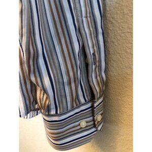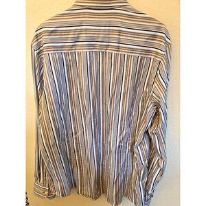 House of Lords Grey Blue White Striped Button Down Long Sleeve Cotton Shirt 2XL