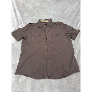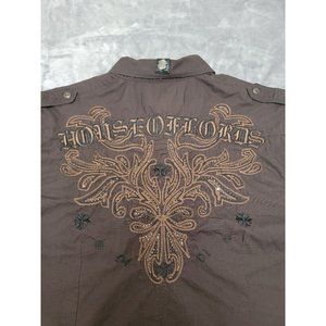 House of Lords Men's XL Short Sleeve Brown Embellished Shirt Gothic, Moto, Rock