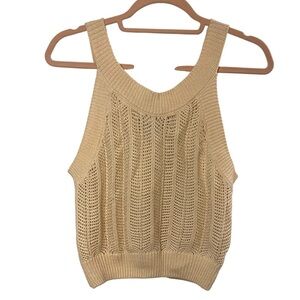 House of Moriibrand delicate open knit tank top in cream slightly cropped with thick band details. Excellent used condition