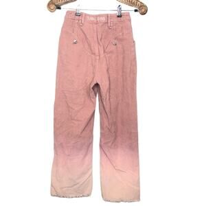 House of Sunny Corduroy Pants Pink Ombre Raw Fringe Hem Loose Straight Leg 2