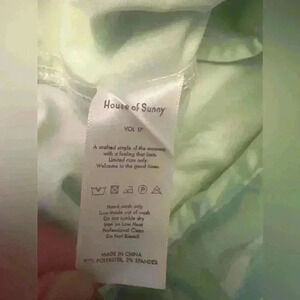 UK House of Sunny Paradise Pant. Wide Leg. High Waisted Flat front with Zipper closure, belt loops. Fitted through the leg, then flare bottom with zipper front at hem. Two front slash pockets. One back Pocket