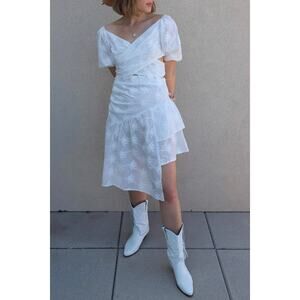 House of Sunny Prairie Sundress Pearl White Dress Embroidered Floral Size 4