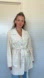 This vegan leather coat features a 70's snap-button design and a waist tie closure.