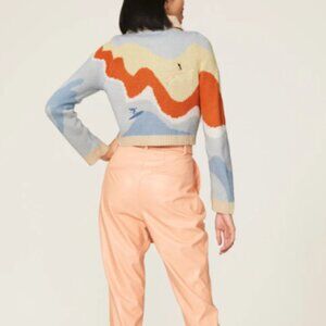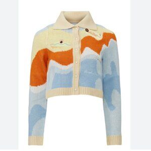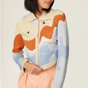 House of Sunny Souvenir Cardigan Sweater Ivory Blue Multi Size 4