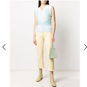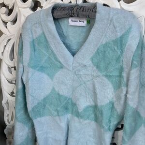 Blue nylon mix argyle knit jumper from House of Sunny featuring argyle intarsia knit, long sleeves and V-neck. Detachable sleeves convert this sweater to a sweater vest. Excellent used condition. Just a little wrinkled.