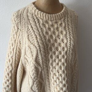 House of Tweed sz M Cozy Cream Cable Knit Sweater 100% wool great pre owned cond