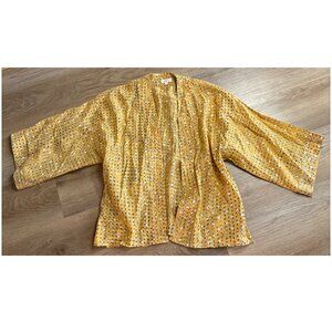 House of Wandering Silk yellow top open shirt One Size India dot print boho